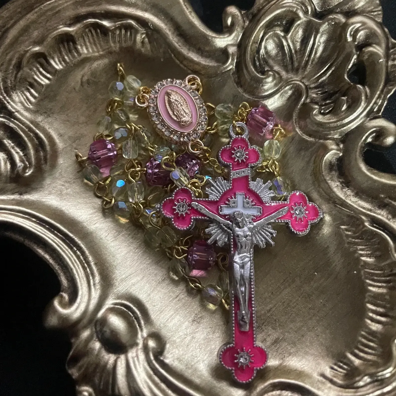 - 🌸 The Pink Variant (The Showstopper): This one is truly special. Not only do the glass beads glow, but the pink crucifix itself glows pink! It is easily the most majestic and "magical" looking version in the collection.